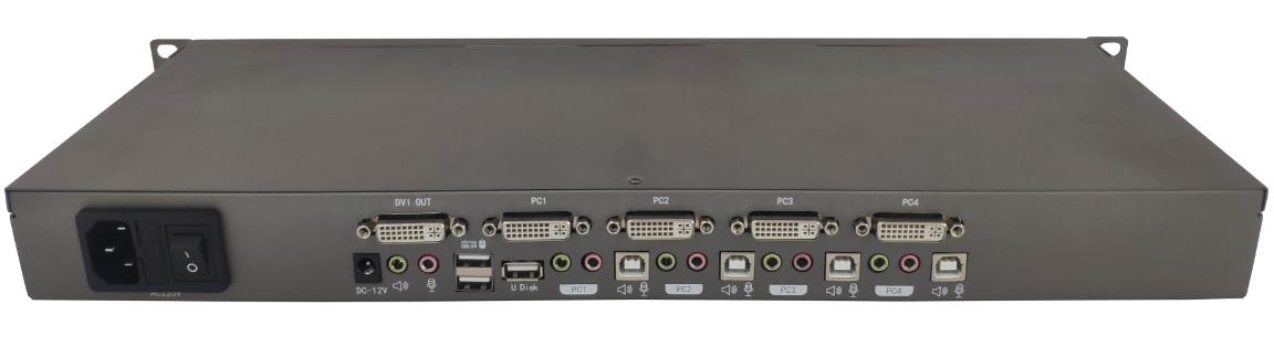 Spec:Support 4-ch DVI input, 4-ch audio/mic input, 4-ch USB input,  1-ch USB for U-disk input, 1-ch DVI output, 1-ch USB output, 1-ch audio/mic output, 1U rack mount