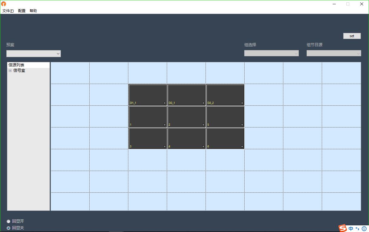 預(yù)先設(shè)置好屏幕與信號源的對應(yīng)關(guān)系,預(yù)案調(diào)用時可快速將屏切換到對應(yīng)信號源。設(shè)置及調(diào)用方式與組功能類似。